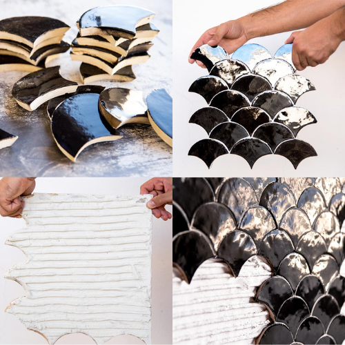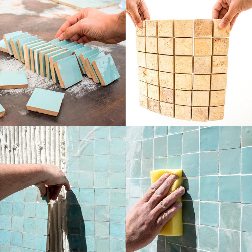 Pre-assembled, ready to lay, push-in zellige” is a real revolution exclusively developed and pioneered by the Dar Zellige Workshops. As such, through a unique savoirfaire, and building on their mastery of traditional zellige techniques originating from Fes Morocco , the Dar Zellige Workshops developed new application techniques. This resulted in an exclusive process for the manufacturing of its zellige patterns, in a preassembled form, making it possible to easily and rapidly lay the zellige just like conventional.