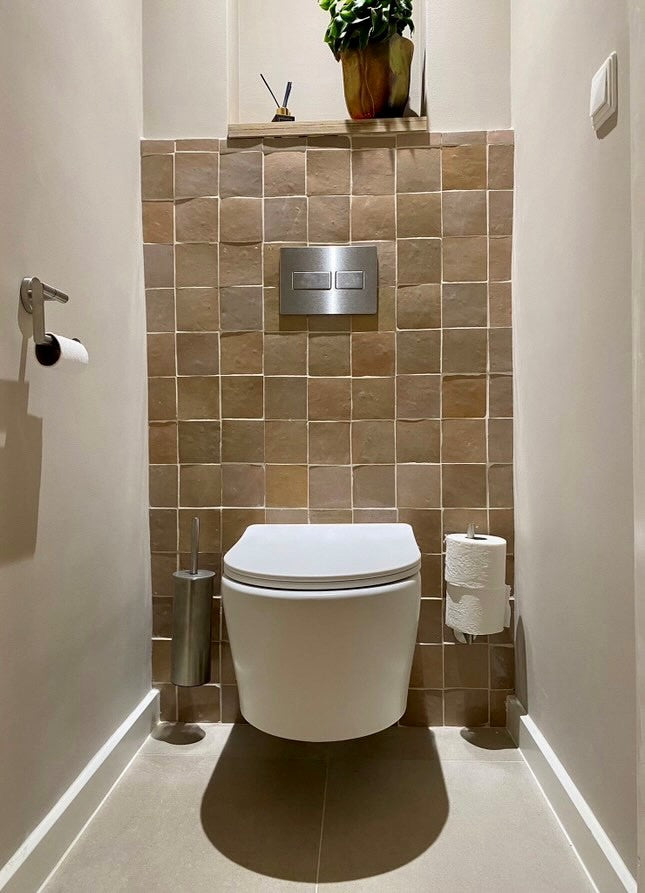 Due to the sharp edges, Zellige can be placed with very narrow grout lines. The most beautiful result is actually without any grout lines at all. This is only possible with Zellige of very high quality. Any skilled tile setter can install these tiles.