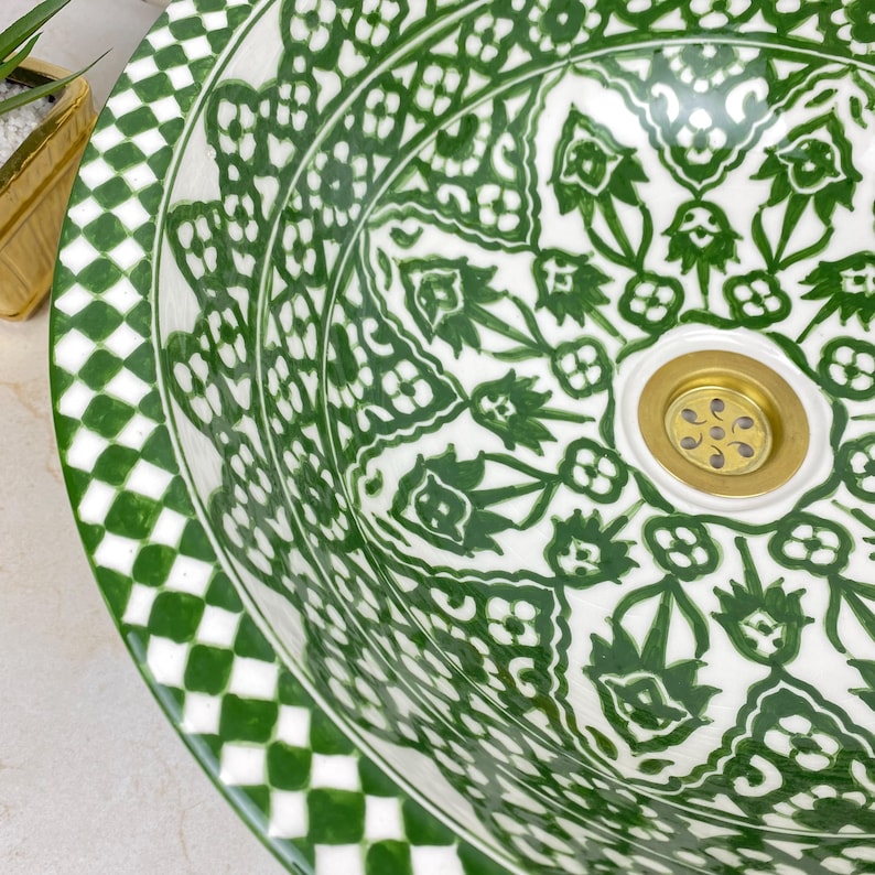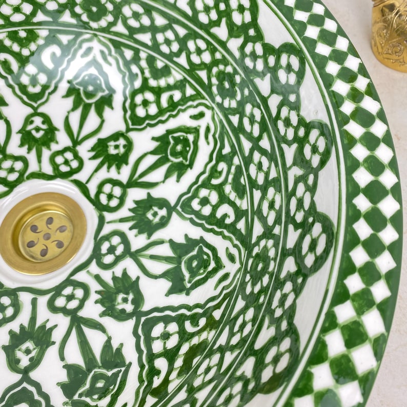 Green DAJAL Ceramic Wash Basin With Wave rim- Handmade Moroccan Basin Sink