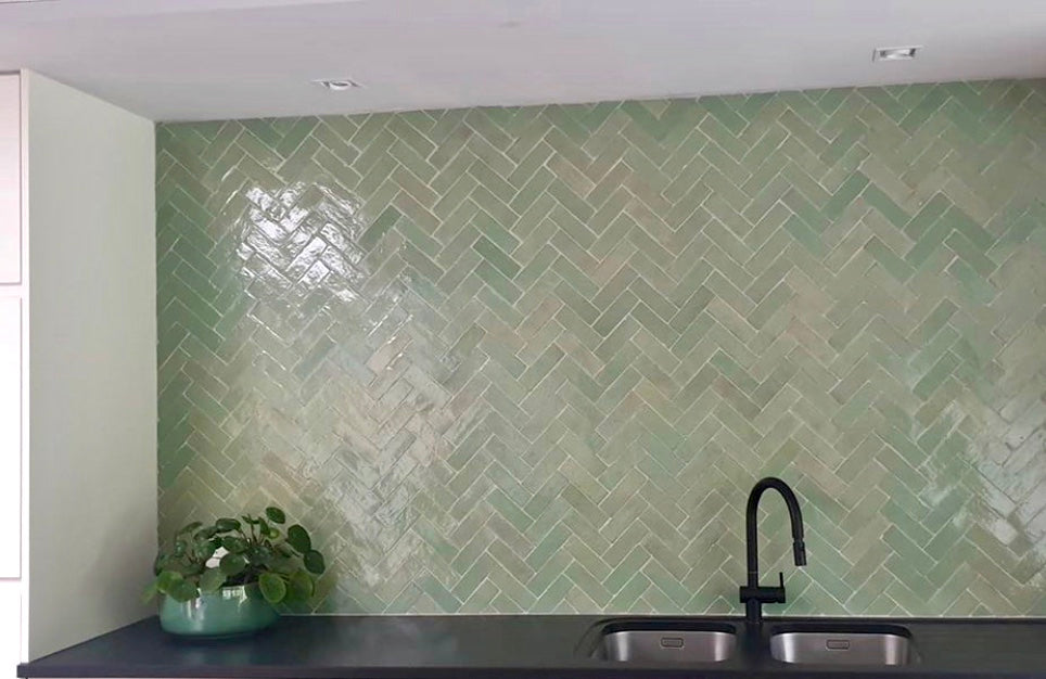 Due to the sharp edges, Zellige can be placed with very narrow grout lines. The most beautiful result is actually without any grout lines at all. This is only possible with Zellige of very high quality. Any skilled tile setter can install these tiles.