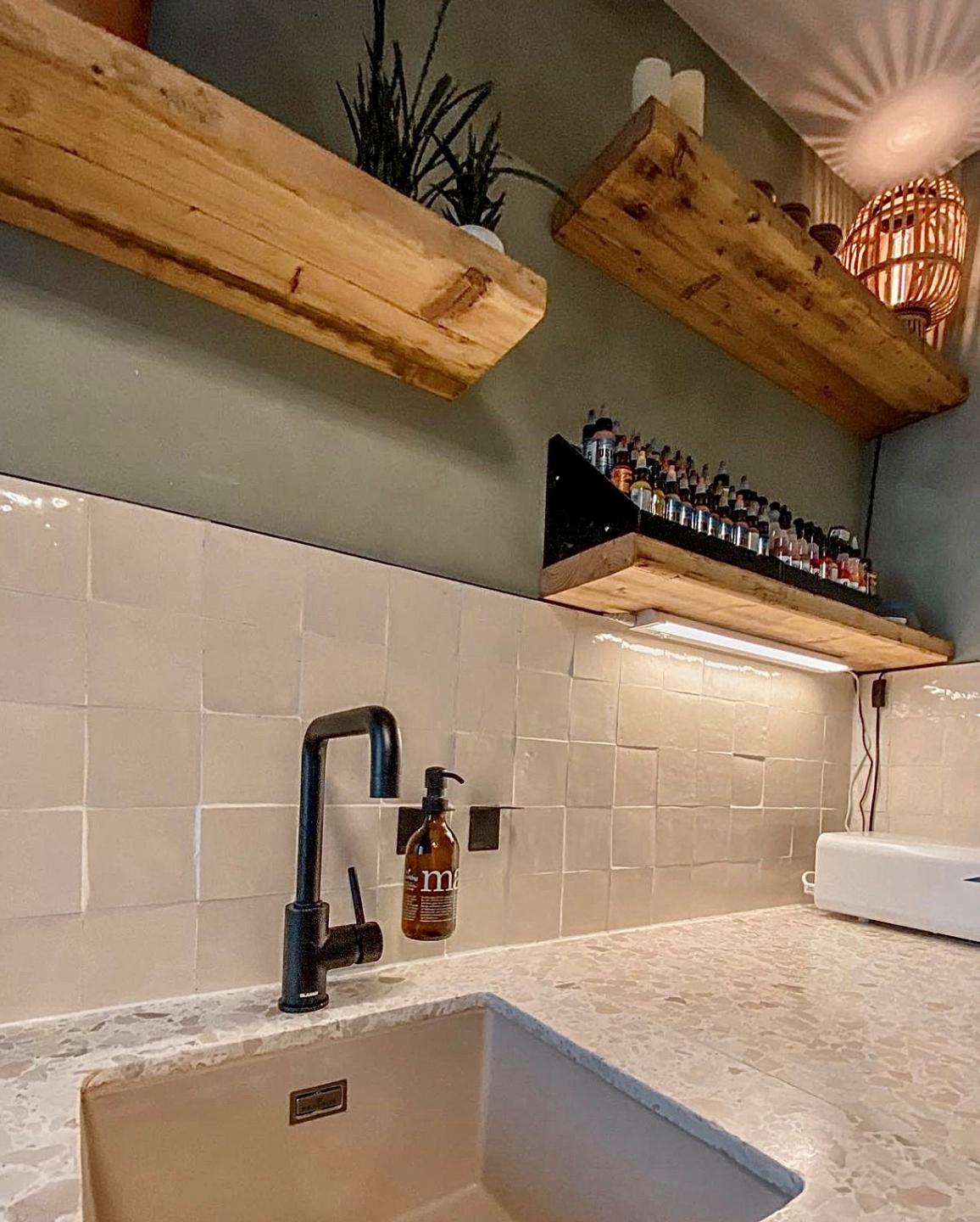Our Zelliges are made in Fez. This Moroccan city is the epic center of Zellige production. The workshop has been making Zelliges for 7 centuries. Authentic Zelliges can be recognized by the chiseled edges, a lightly glossy glaze sometimes with small imperfections, and a nuanced color palette - no tile is exactly the same. When the Zelliges are well mixed and placed, you get a color pattern that can never be achieved with ceramic tiles.